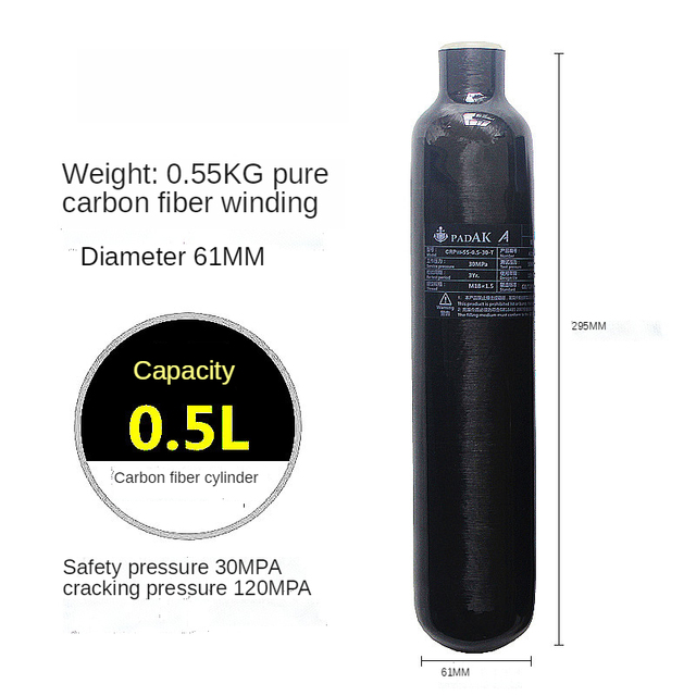 0.36L/0.42L/0.5L Carbon Fiber Gas Cylinder 30MPA High Pressure Gas Cylinder Portable Oxygen Tank M18*1.5 Thread