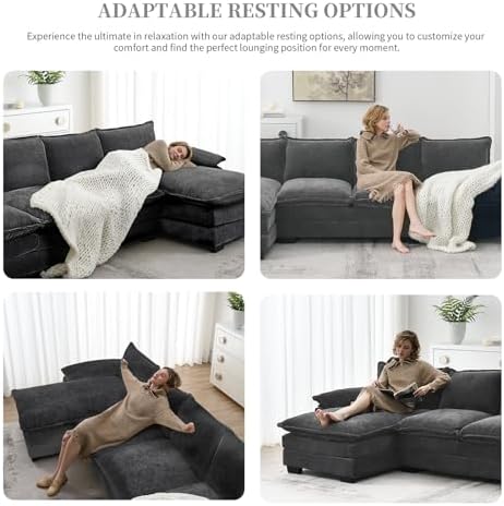 When you need to relax on the sofa, this Chenille combo sofa comes with a double cushion for a soft and comfortable cushioned experience that adds extra support and decorative appeal to your living space. Modular sofas with full sponge cushions are a versatile and practical choice for any living space. This modern section boasts a classic design that will never go out of style. Upholstery and smooth lines blend perfectly to create a harmonious look that fits any decor and enhances your space. A sturdy wooden and iron frame that maintains its shape and elasticity over time ensures long-lasting comfort and durability.