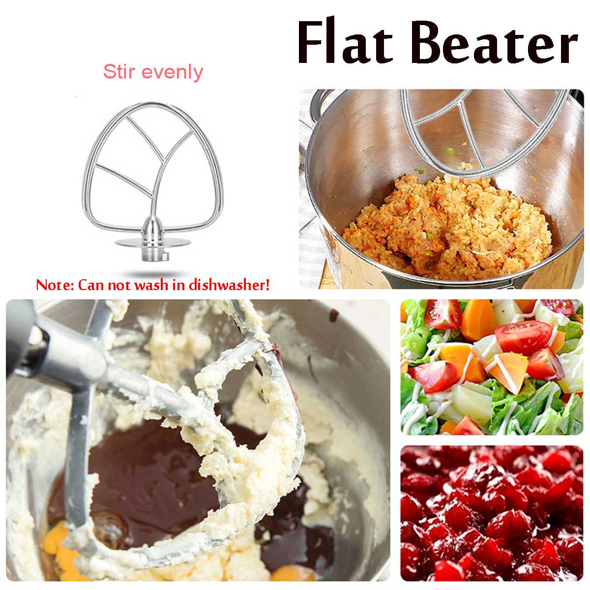 2)The dough hooks and the flat beater are made of aluminium alloy, they are light and sturdy, but can not wash in dishwasher. The heat in dishwasher will corrode the electrodeposited coating of utensils.