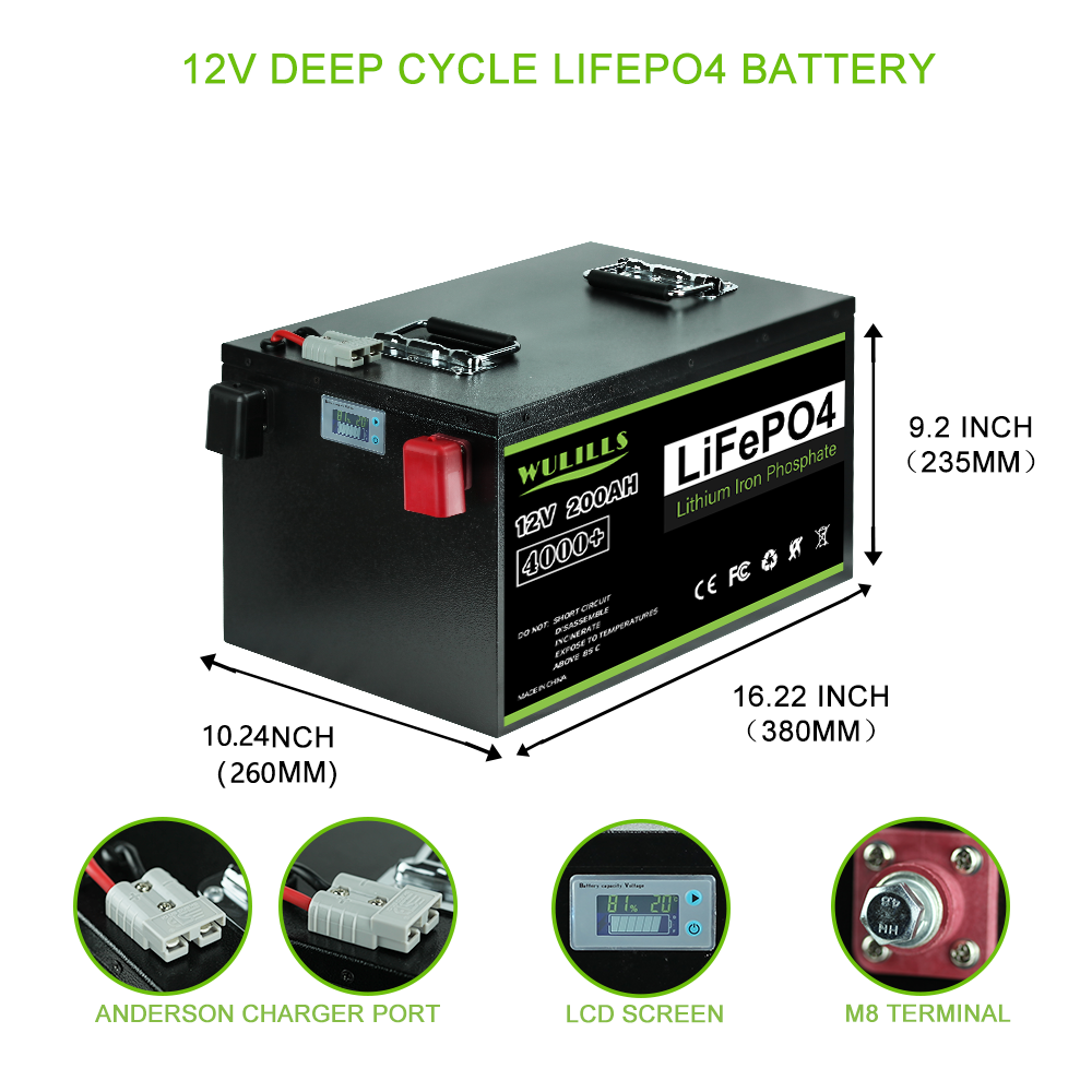 deep cycle lithium-ion battery has higher energy density, more stable performance and greater power. LiFepo4 battery will not burn when overcharged, overdischarged, overcurrent or short circuit, and can withstand high temperatures without decomposition. It can support fast charging and solar panel charging. Our LiFepo4 batteryis a green battery, it does not contain any heavy metals and rare metals and is more environmentally friendly.
