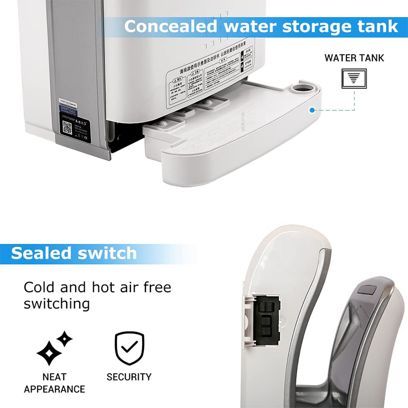 • HEPA FILTER - This bathroom hand dryer with built-in high quality HEPA filter is more hygienic. It cleans the air and provides absolutely pure air flow. The detachable air filters can also prevent dust from entering the machine, which also can promise the long life of the air hand dryer.