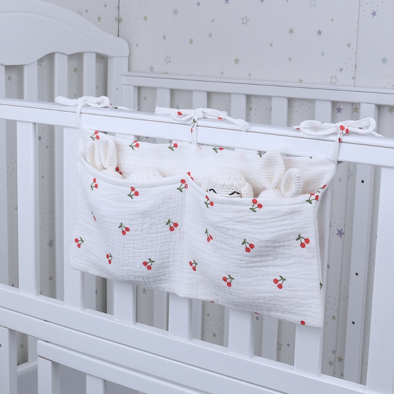 The Cotton crib hanging storage bag is suitable for diapers, pacifiers, teethers, baby wipes, diapers or small toys, etc. You can also put toys, books or whatever you want there.