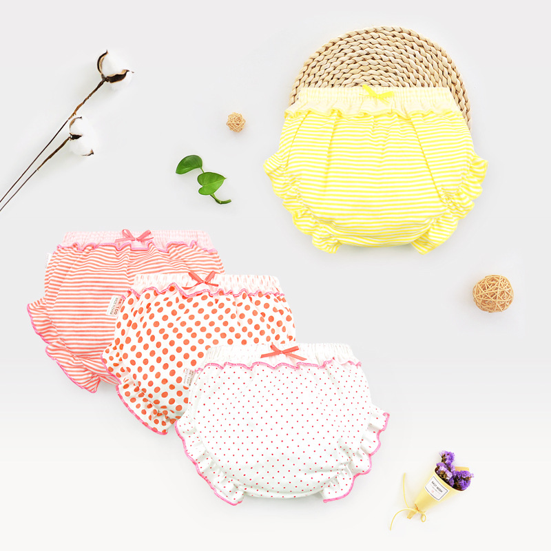 3 Piece/Lot Kids Cotton Panties Girl Baby Infant Newborn Solid Cute Bow Striped Dots Underpants For Children Gift CN