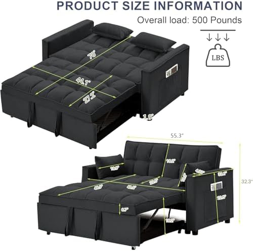 Product Information Main Material: Velvet Product Dimensions (in.): 55.20‘’ L x 33.11'' W x 32.19'' H Product Weight (lbs.): 89.12 Package Size (in.): 46.86'' L x 38.98'' W x 16.24'' H Package Weight (lbs.): 103.41
