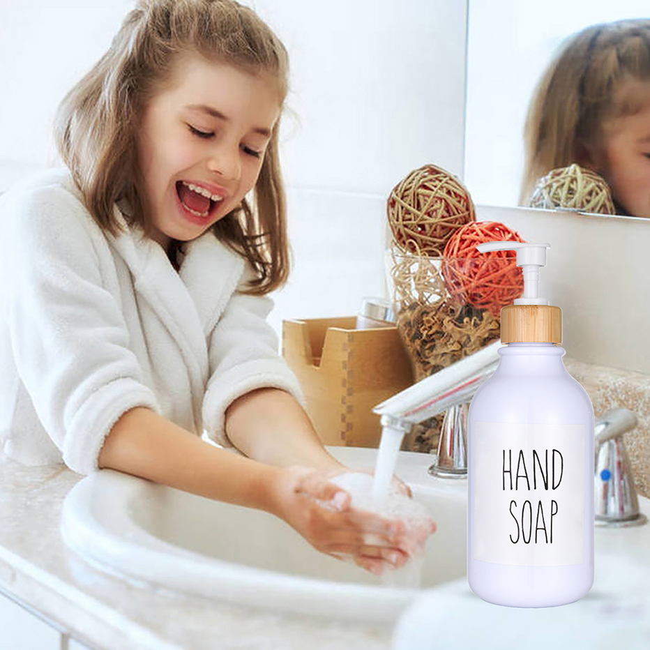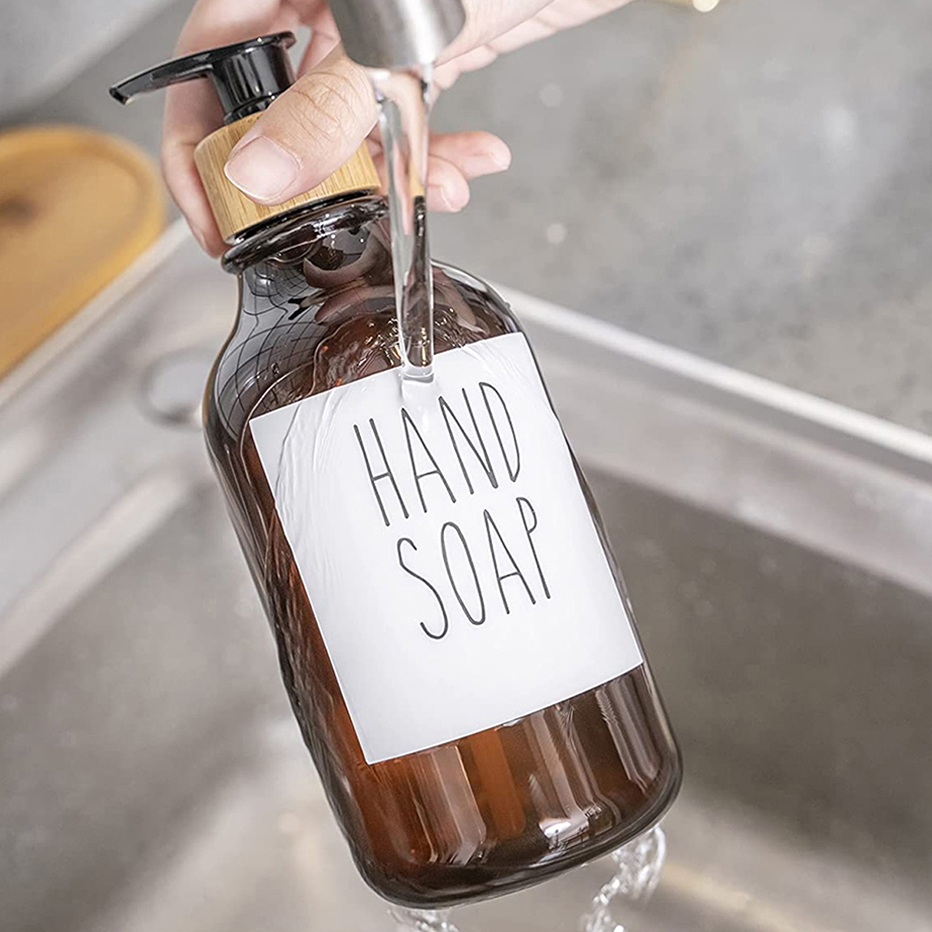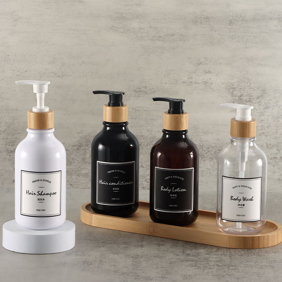 300/500ml Soap Dispenser Bottle Bamboo Pump Bathroom Portable Soap Bottle Shampoo Shower Gel Refillable Bottle Waterproof Label