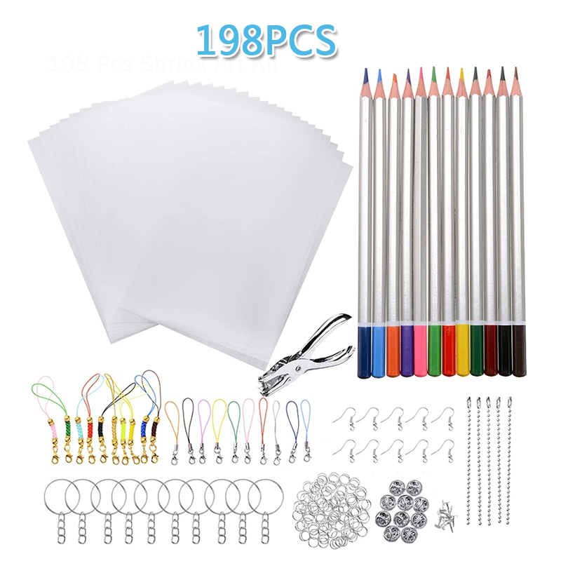 33/145/198 Pcs Shrink Plastic Sheet Shrinky Art Film Paper Heat Blank Keychain Earring DIY Kit Drawing Art Supplies for Kids