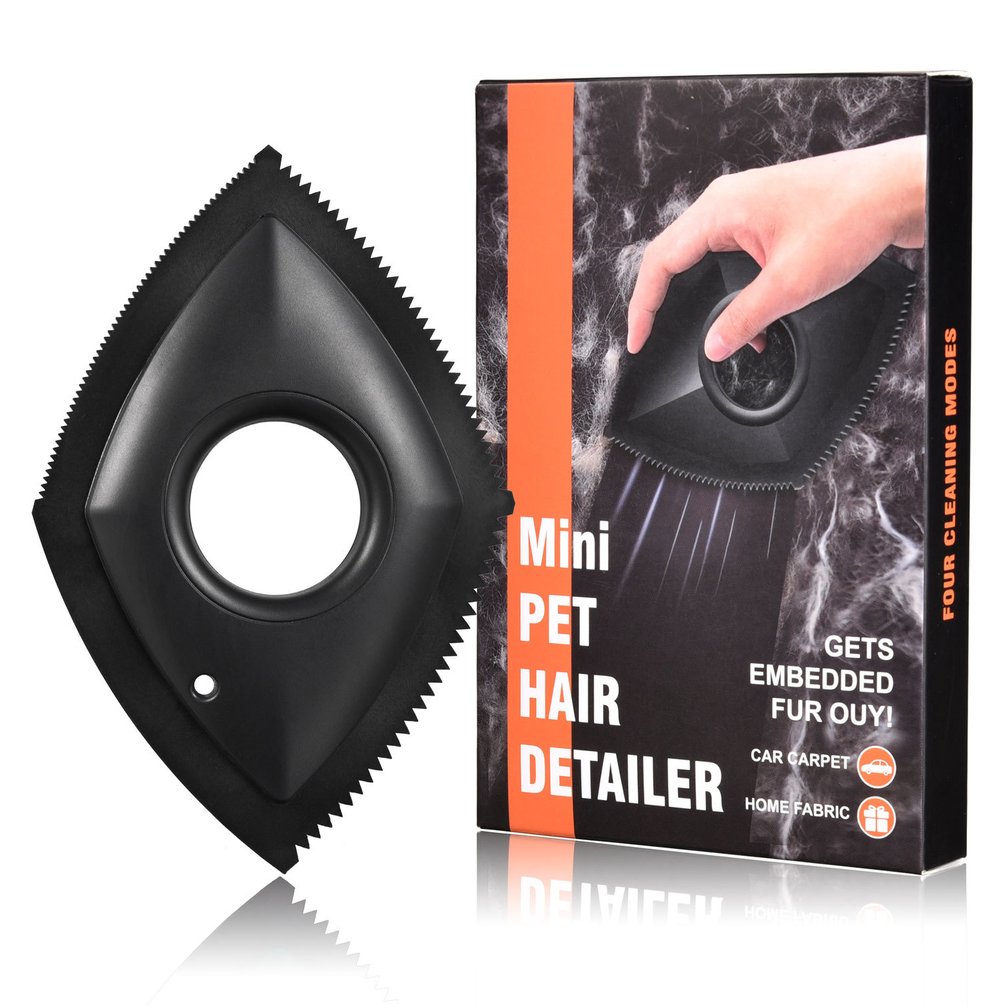 2. REMOVER PET HAIR:Your New weapons for auto detailing/car detailing and cleaning household fabrics.The long edge, arc edge and four bevels of the dog hair remover correspond to the cleaning of the plane, arc surface and corner respectively. The cat hair remover removes even the most stubbornly trapped dog and cat hair. It is perfect for cleaning cars, carpets, couches, comforters, clothes and more.
