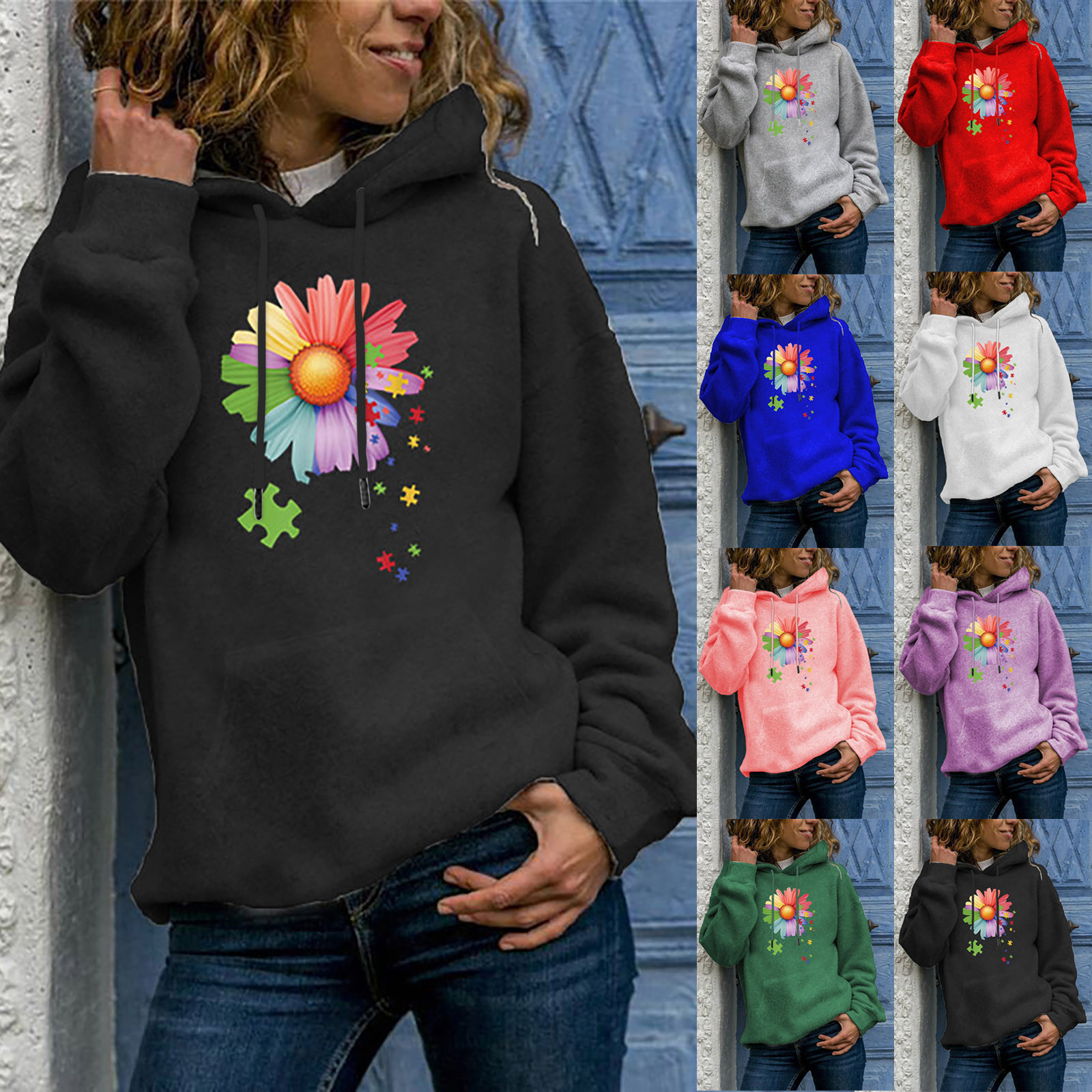 Winter Womens Casual Long Sleeve Tops Ladies Print Pullover Sweatshirt Blouse