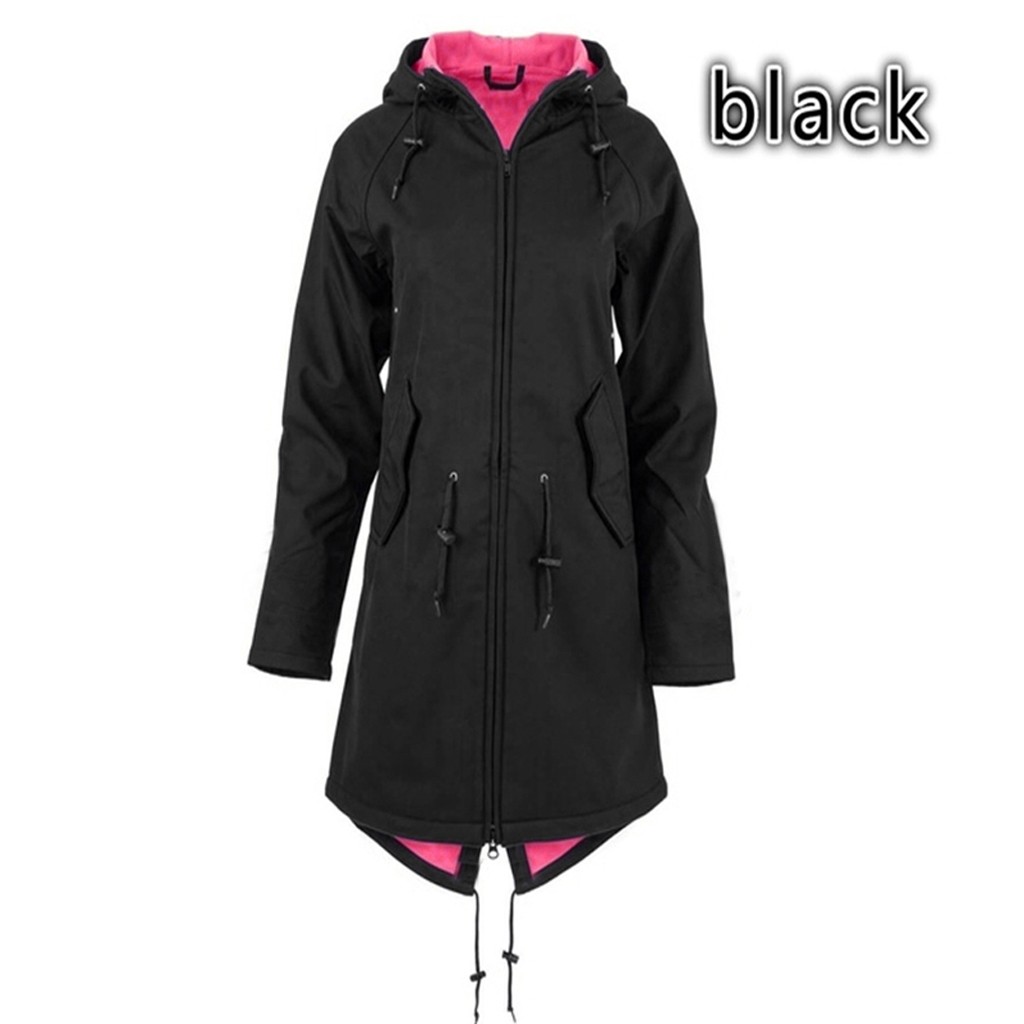 Women's Solid Rain Jacket Outdoor Hoodie Waterproof Overcoat Windproof Long Coat