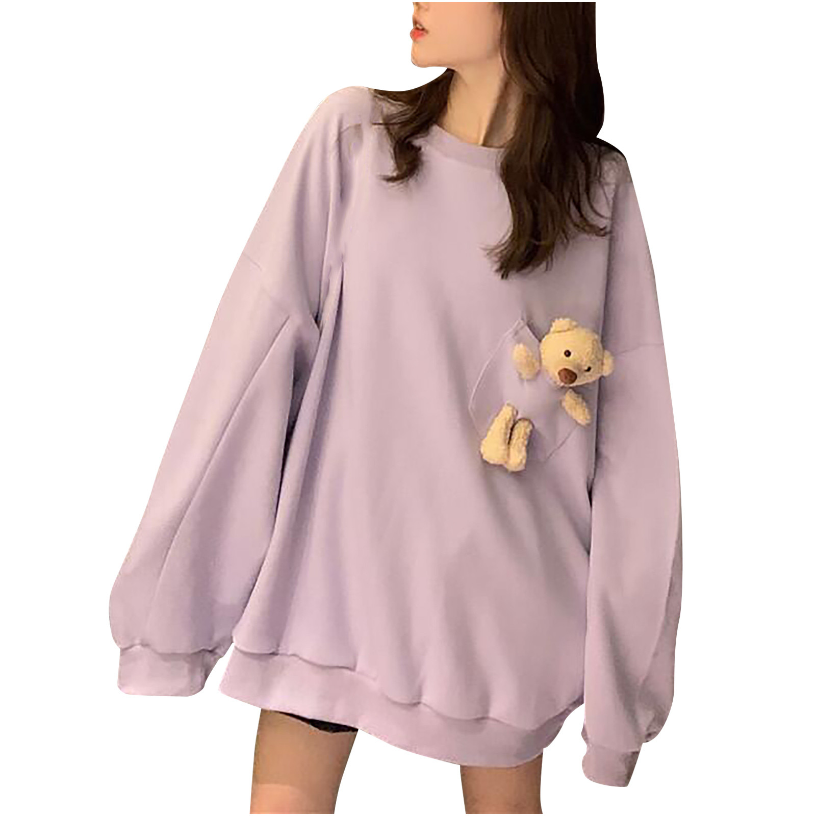 Women's Spring And Autumn Loose Wild Pullover Solid Bear Sweatshirt