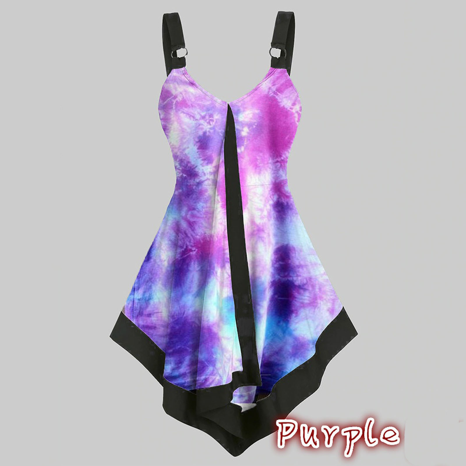 Womens Fashion Tie-dye Tank Tops Ladies Sexy Cami Swing Vest Skirt Clubwear