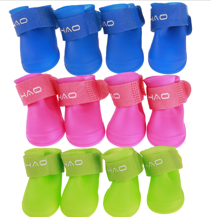 4Pcs Pet Dog Rain Shoes Anti-Slip Waterproof Shoes for York Dogs Winter 7 Colors Rubber Boots Shoes for Small Dogs Chihuahua