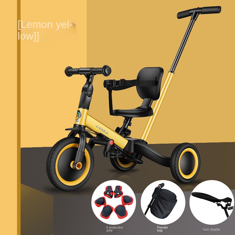 ✔️ Option name (E) : 1 Pc x children's tricycle + 1 Pc x Backrest + 1 Pc x push handle + 1 Pc x storage bag + 6 Pcs x Protective gear + 1 Pc x awning