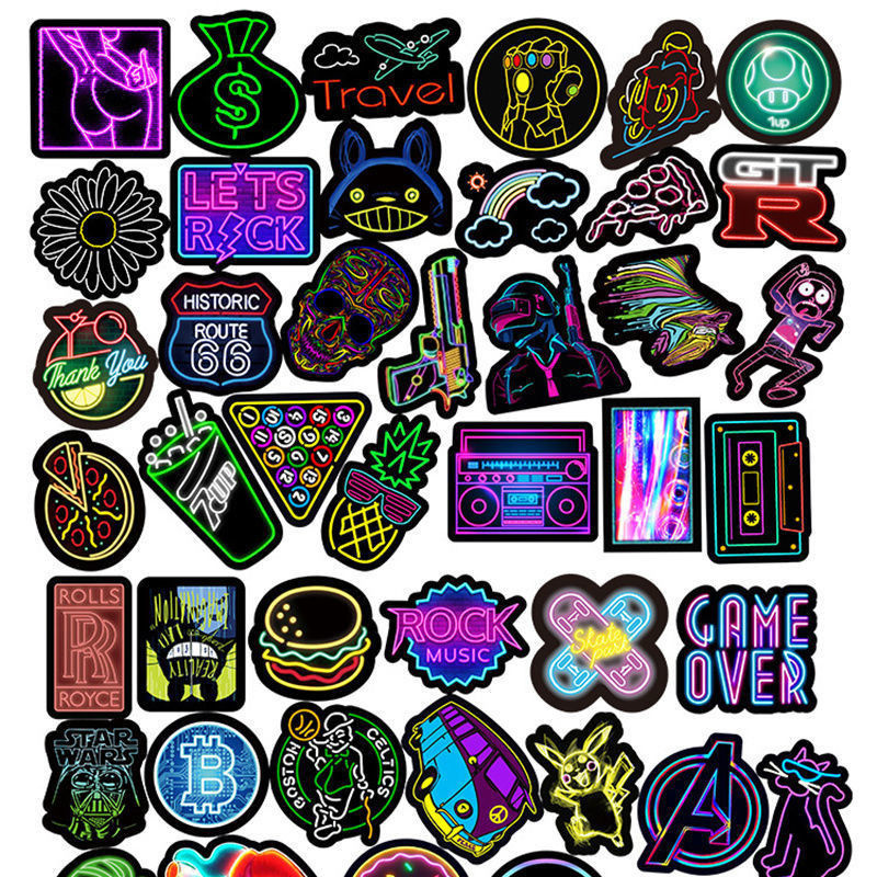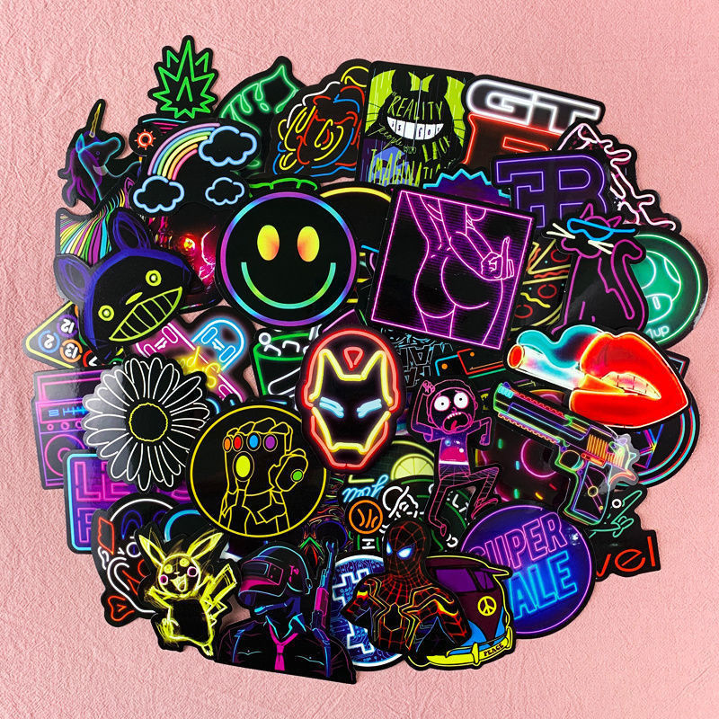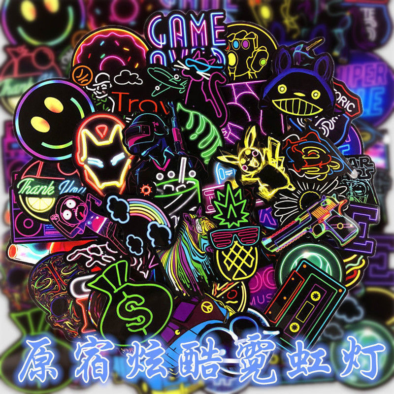 50 non-repeating stickers ins Harajuku neon stickers cool creative graffiti wall decoration waterproof stickers mobile stickers