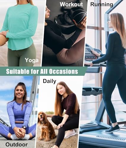 Ultra soft polyester and spandex fabric,naturally breathable, lightweight, quick dry, stretchy and comfortableto wear. Womens long sleeve t shirts are designed for yoga, exercise, fitness, gym,running, any type of workout or everyday use. They combine fashion,function and performance.