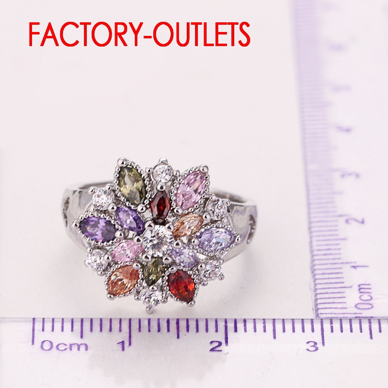 925 Sterling Silver Ring Jewelry Colourful Cubic Zirconia Flower Design Cute Style Women Girls Party Engagement