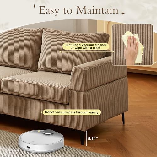 96" Corduroy Sectional Sofa Couches for Living Room,Camel L Shaped Sofa Couch with Reversible Chaise,Comfy 3 Seat Reversible Sofa for Bedroom Office Apartment Convertible Couch (Camel)