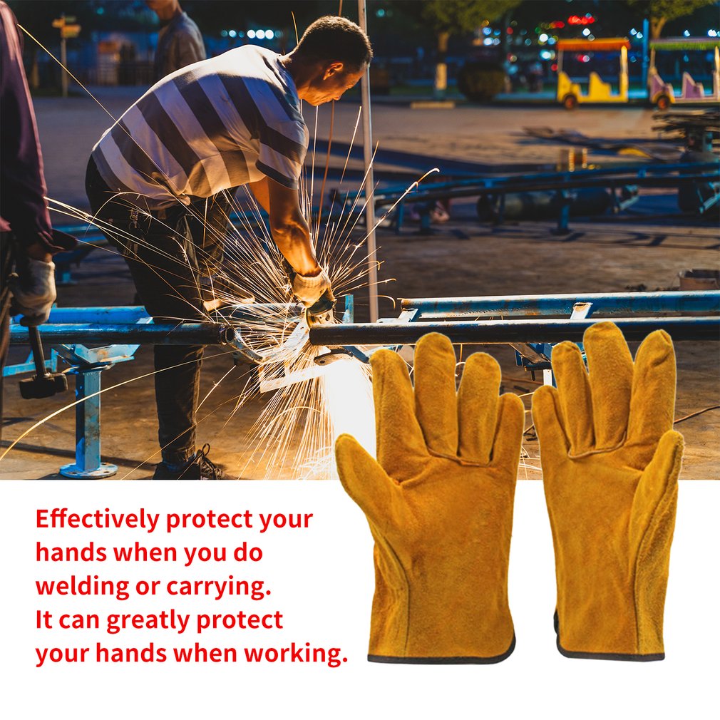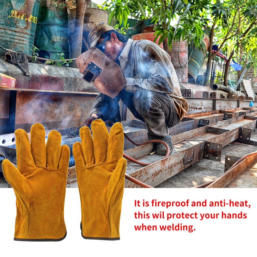 A Pair/Set Fireproof Durable Yellow Cow Leather Welder Gloves Anti-Heat Work Safety Gloves For Welding Metal Hand Tools