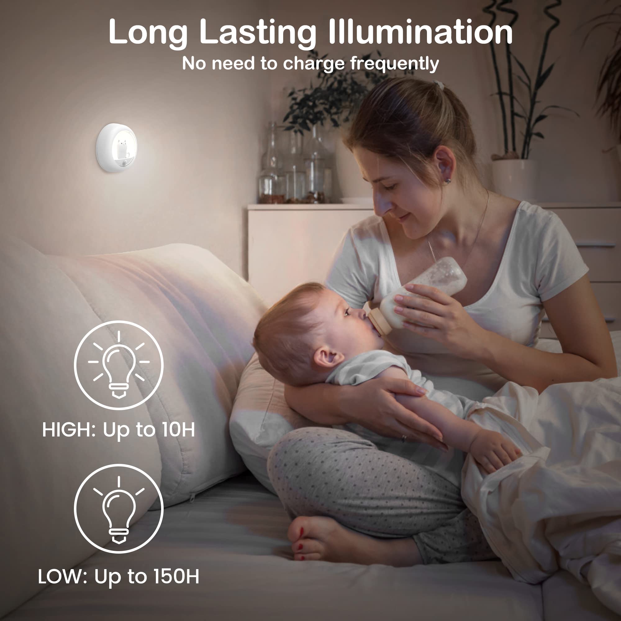 ALACRIS Motion Sensor Night Light Rechargeable LED Night Light Adjustable Brightness Natural Soft Light for Bedrooms Bathroom