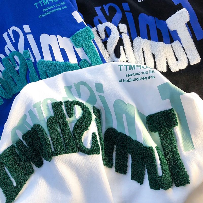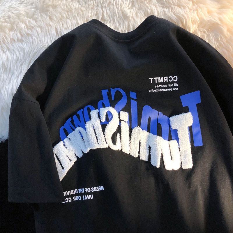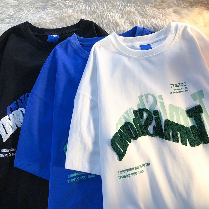 American letter embroidery short-sleeved T-shirt women's summer Y2K high street casual loose couple round neck T-shirt