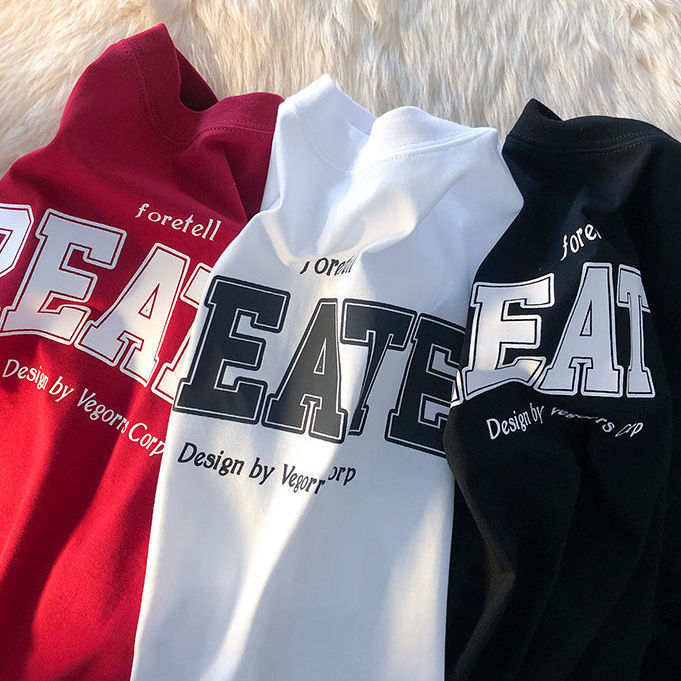 American retro Hong Kong style short-sleeved t-shirt men's ins loose all-match bf lazy wind half-sleeved top T-shirt y2k top