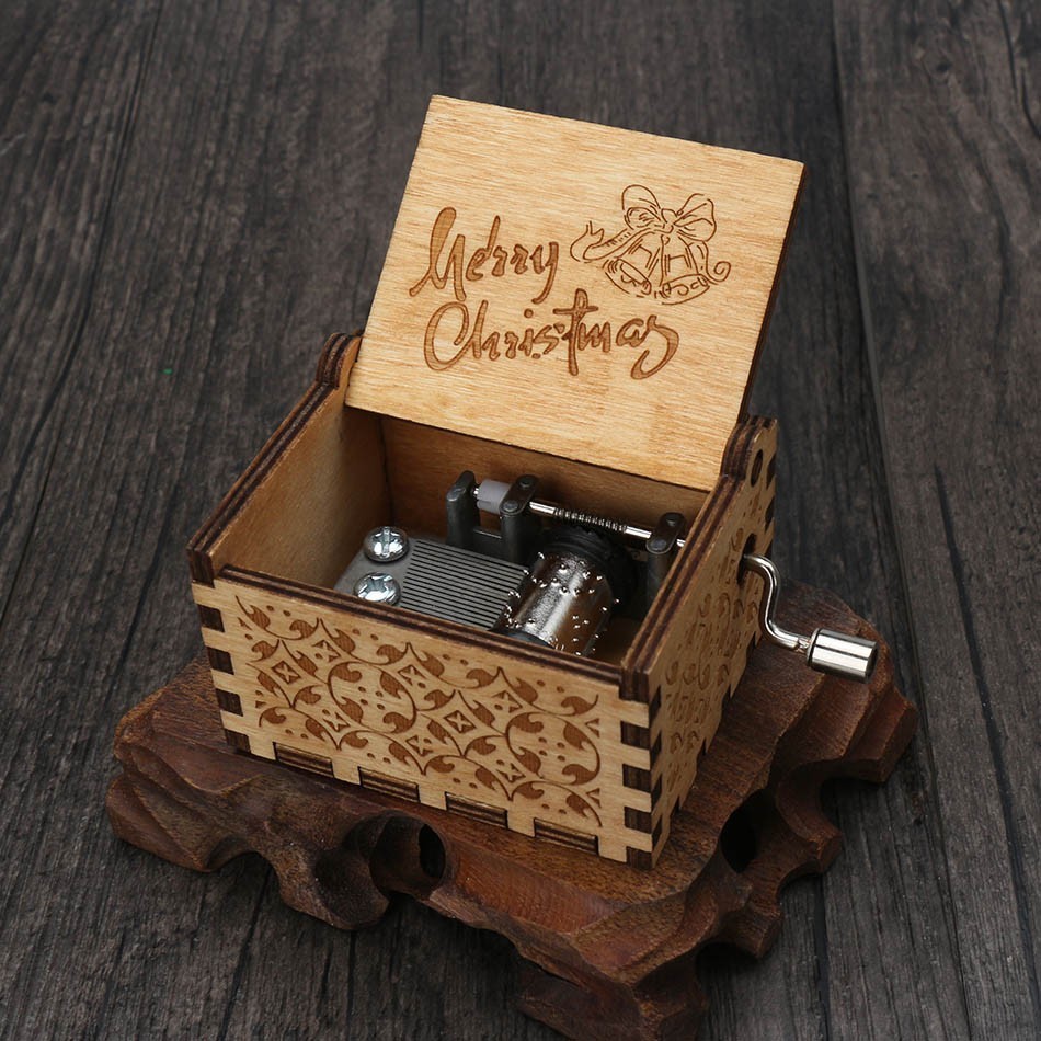 In Stock Wholesale Hand Cranked Wood Music Box Christmas Gift