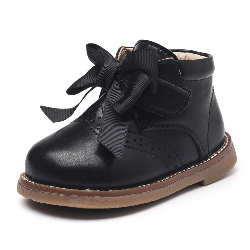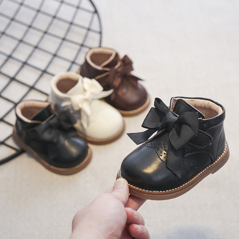 2021 Anti-slippery Genuine Leather Baby Girls Boots with Butterfly-knot Casual Flat Heel Autumn Winter Baby Girl Shoes E08044