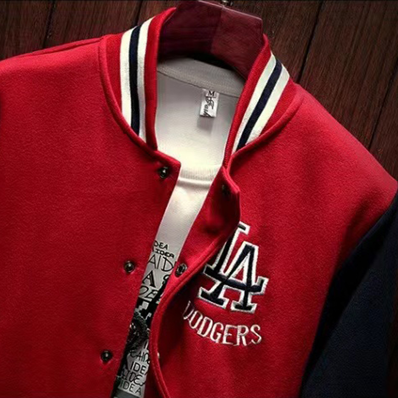 Arrival Letter Rib Sleeve Cotton Embroidery Logo Single Breasted Casual Bomber Baseball Jacket Loose Cardigan Coat