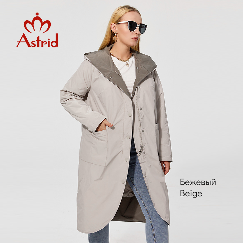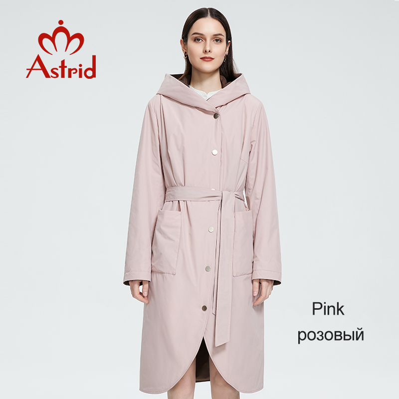 Astrid Spring Women's Parkas Plus Size Thin Cotton Elegant Long Jackets Female Coats with Hooded Big Pockets Belt Outerwear