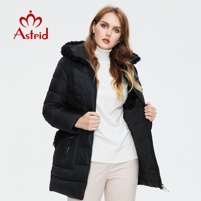 Astrid Winter Women Mid-length Coat Fur collar down jacket female parka Hooded plus size parkas Women's coat 9530