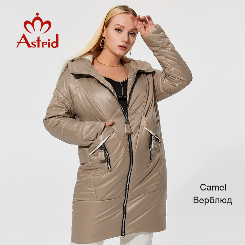 Astrid women's Autumn winter jacket Mid-length Coat Hooded plus size Women's Jacket Thin Cotton Warm Parka AM-9790