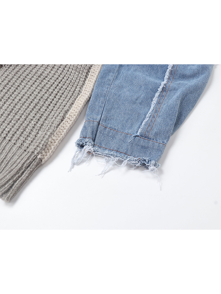 Autumn Winter Women Crew-neck Contrast Color Knitwear Jumper Sweater Loose Long Sleeve Patchwork Tassel Knitted Pullover