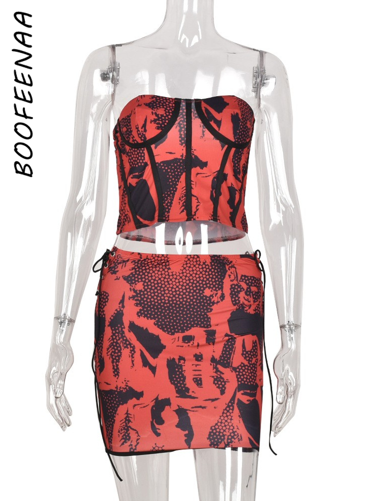BOOFEENAA Two Piece Set Y2k Tube Top and Mini Skirts Matching Sets Sexy Club Outfits for Women Night Out Dress Sets C82CE16
