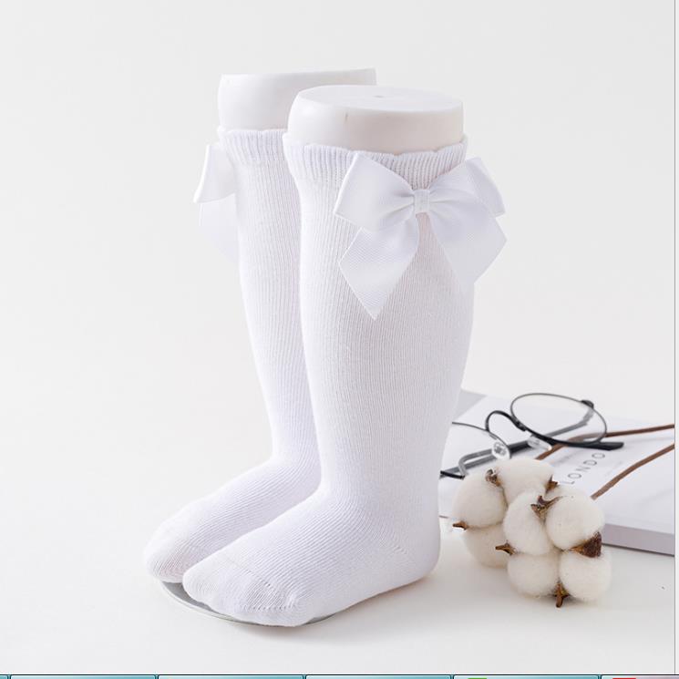 Baby Girls Cotton Long Socks, Solid Color Big Bow Knee High Stocking, Cute Lacework Princess Leg Warmer, Floor Slipper