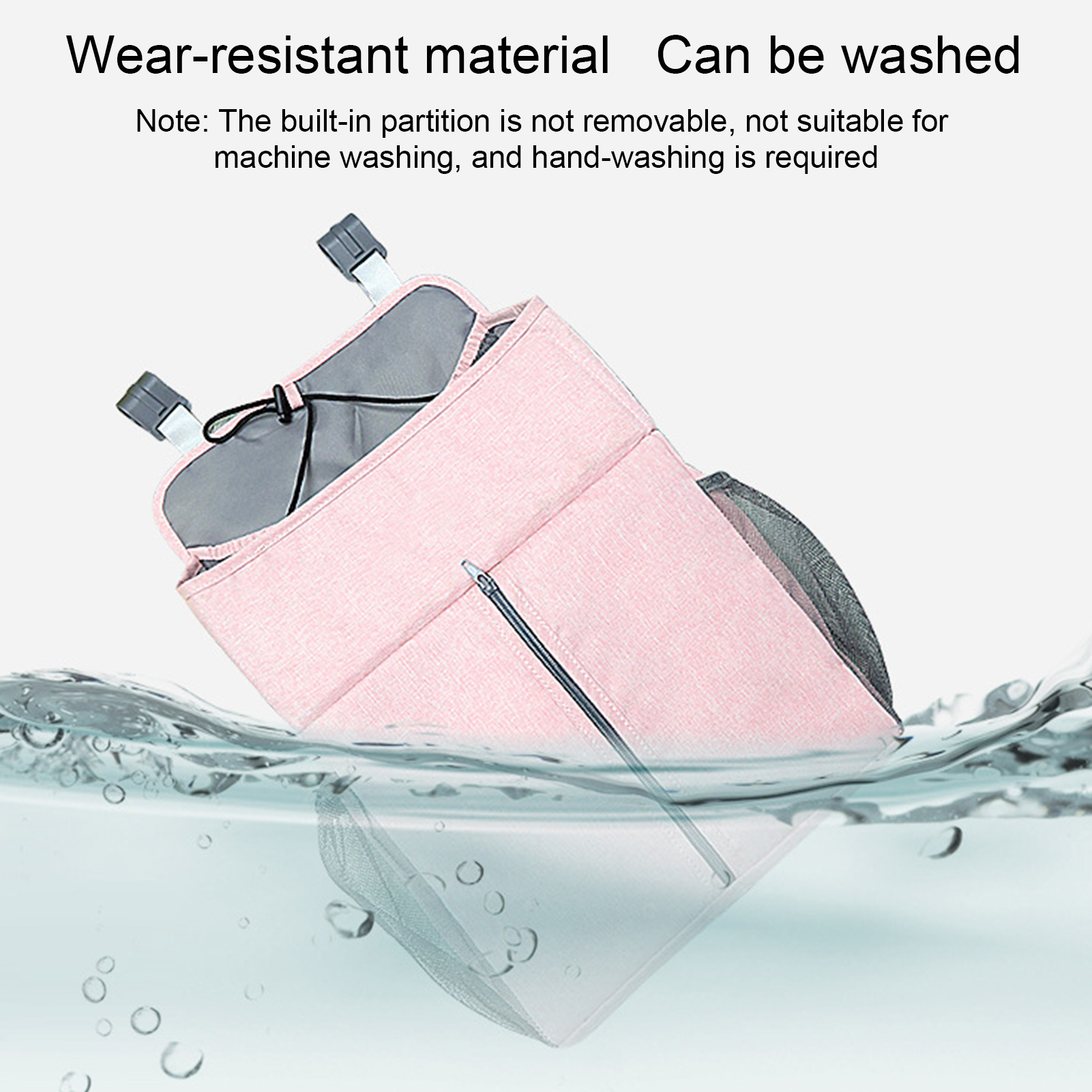 The built-in partition is not removable, not machine washable, hand-washing is required.