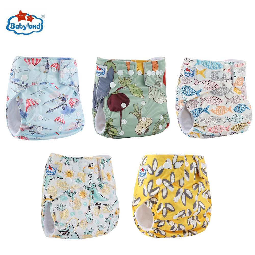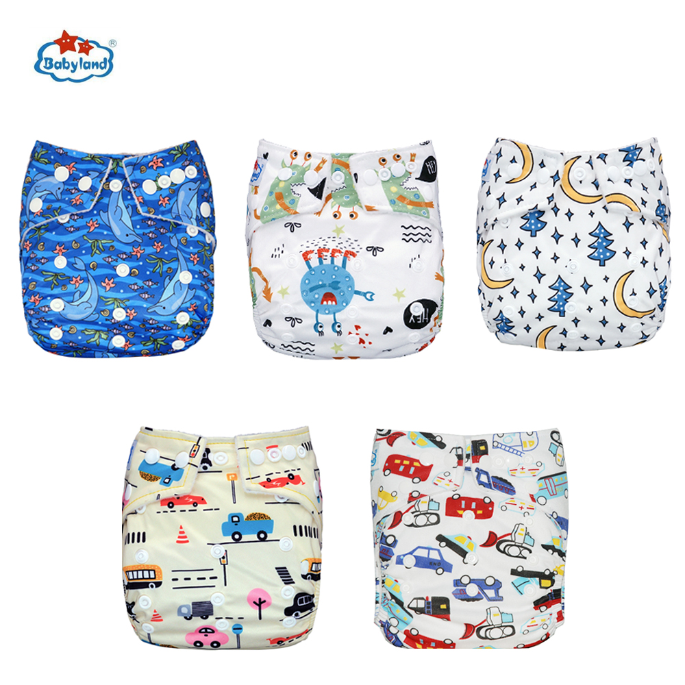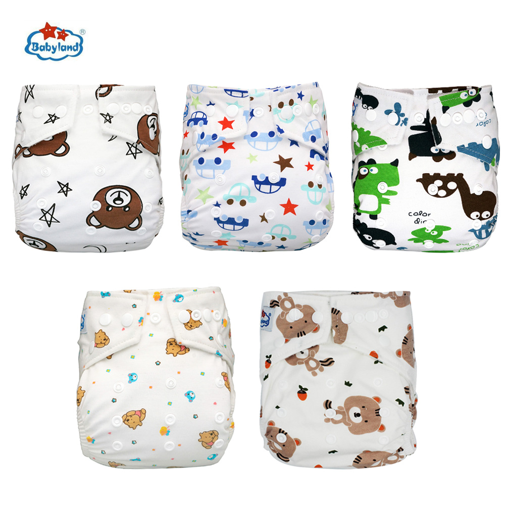 Babyland My Choice Models Baby Diapers 5pcs/Lot Cloth Nappy Girl Boy Prints Pocket Diaper For 0-2 Years 3-15KG Baby Diaper Cover