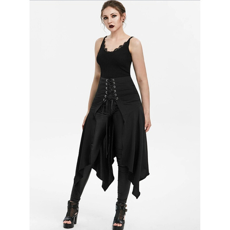 Black Medieval Skirt Women Halloween Vintage Irregualr Hem Steampunk Ladies Long Skirts Gothic Cosplay Dress Skirt