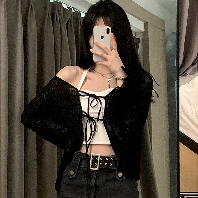 Blouses Women Solid Tops Sun-proof All-match Daily Sweet Mesh Open Stitch Cozy Crop Soft Lace Mujer Design Streetwear