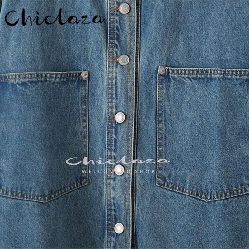 CHICLAZA Spring Autumn Women Solid Casual Jean Jacket Coat Female Single-Breasted Lapel Loose Outwear Ladies