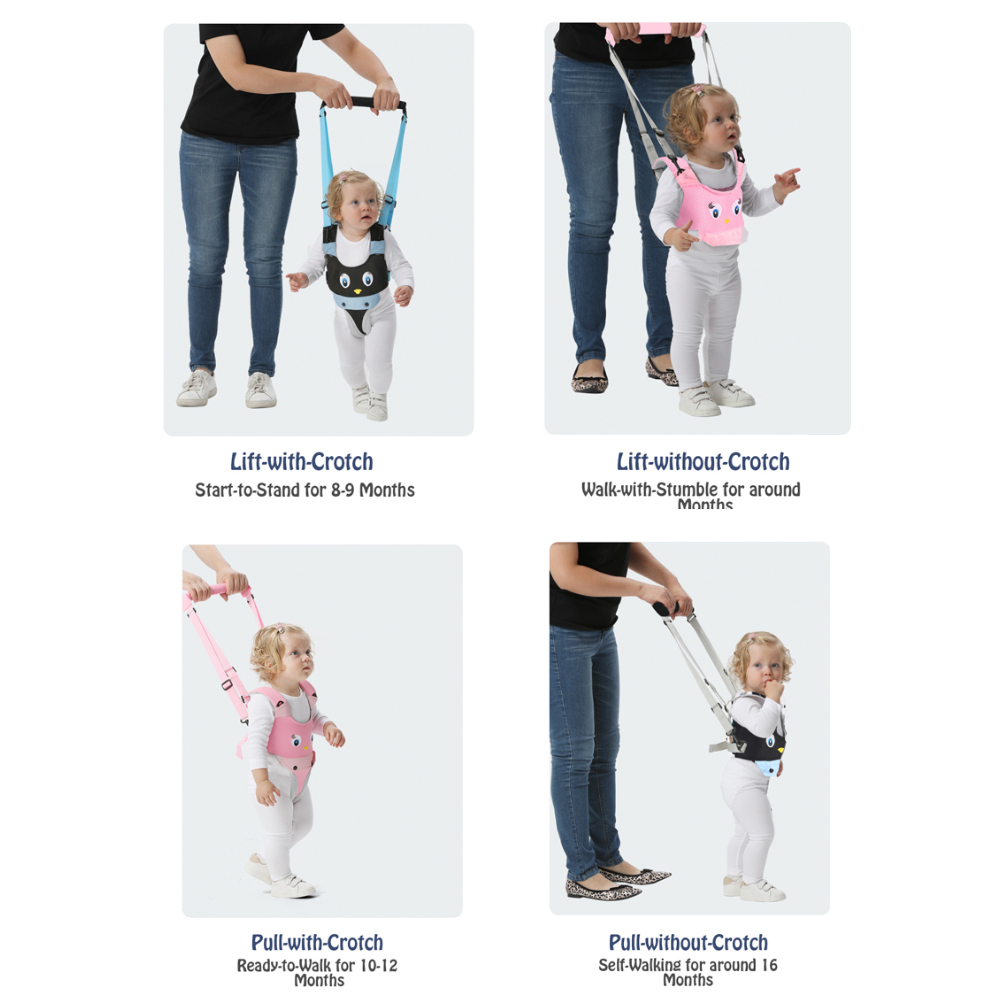 1.this baby walker harness toddler walking harness assures the safety and comfortable while learning to walk. And the high quality material for baby walking helper has good air permeability, can be used in all seasons.