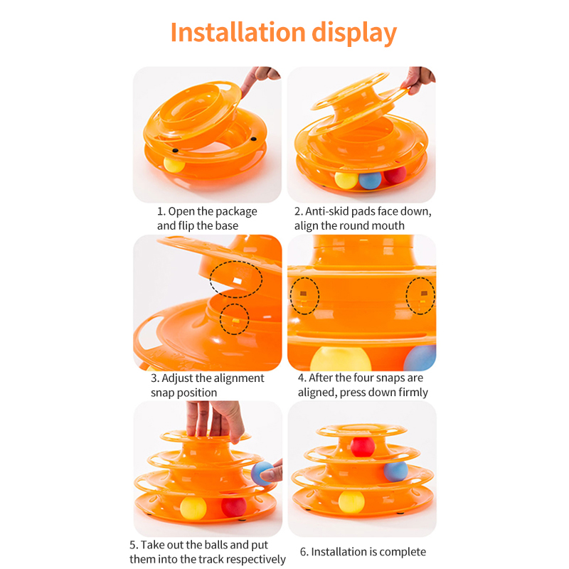 4. Free balls: 3 balls are given for free, the cat can play alone, or can be installed on the turntable track, attracting the cat's attention and increasing the fun of life.