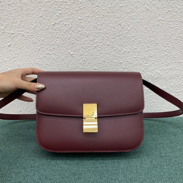 Celine Classic Box Medium Bag In Burdundy Box Calfskin