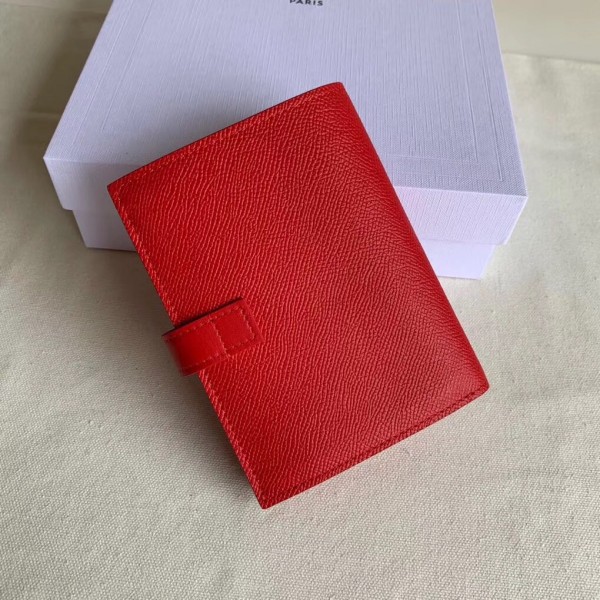 Celine Medium Strap Wallet in Red Grained Calfskin