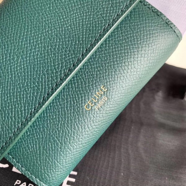 Crafted in grained calfskin leather by the House of Celine, this small trifold wallet with a flap offers enough space to fit into even a tiny bag or clutch, yet with space for coins, notes and credit cards, this neat wallet is the ultimate mini companion. Coupled with an elegant design with golden finishing touches.