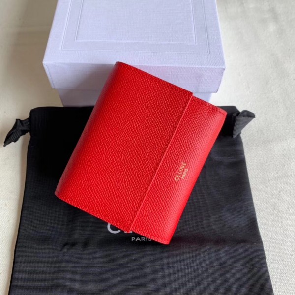 Crafted in grained calfskin leather by the House of Celine, this small trifold wallet with a flap offers enough space to fit into even a tiny bag or clutch, yet with space for coins, notes and credit cards, this neat wallet is the ultimate mini companion. Coupled with an elegant design with golden finishing touches.