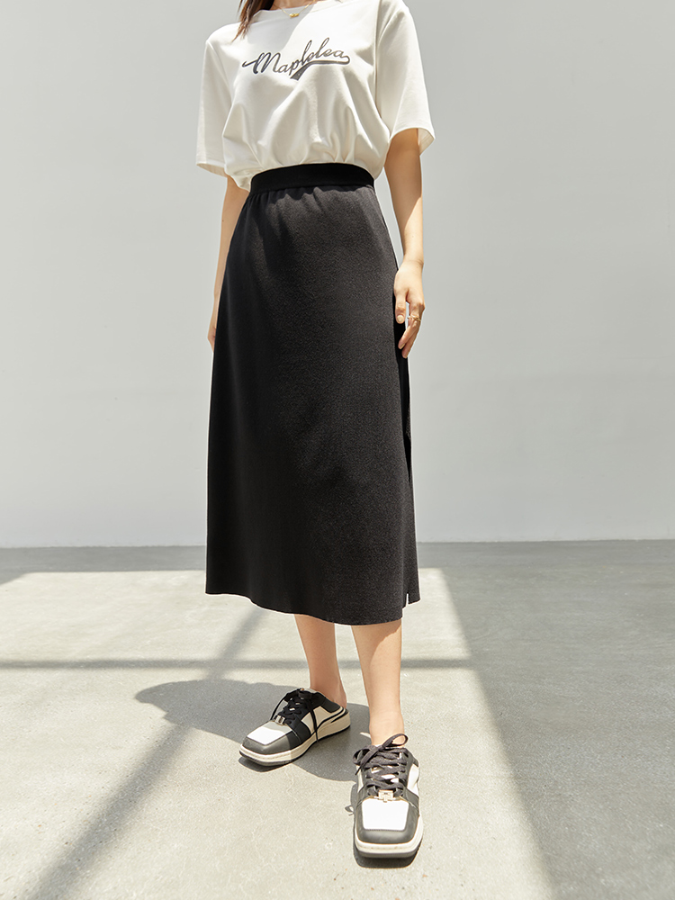 DUSHU Casual Knitted Skirts Women Autumn High Waist Commuter Black All-match Slim Thin Female Hip Skirts Bottoms