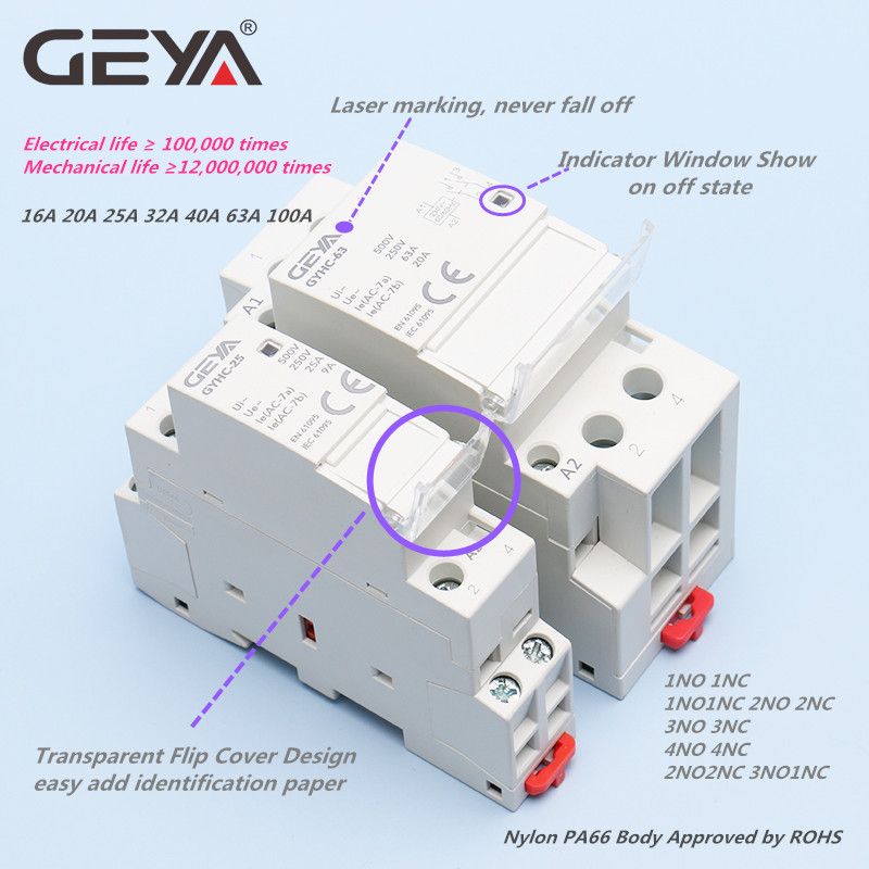GEYA NEW Din Rail Automatic Household Contactor AC220V 2P 16A 20A 25A 2NC 2NO 1NO1NC 50/60Hz