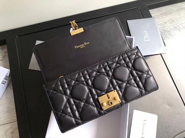 Dior DiorAddict Continental Wallet In Black Lambskin