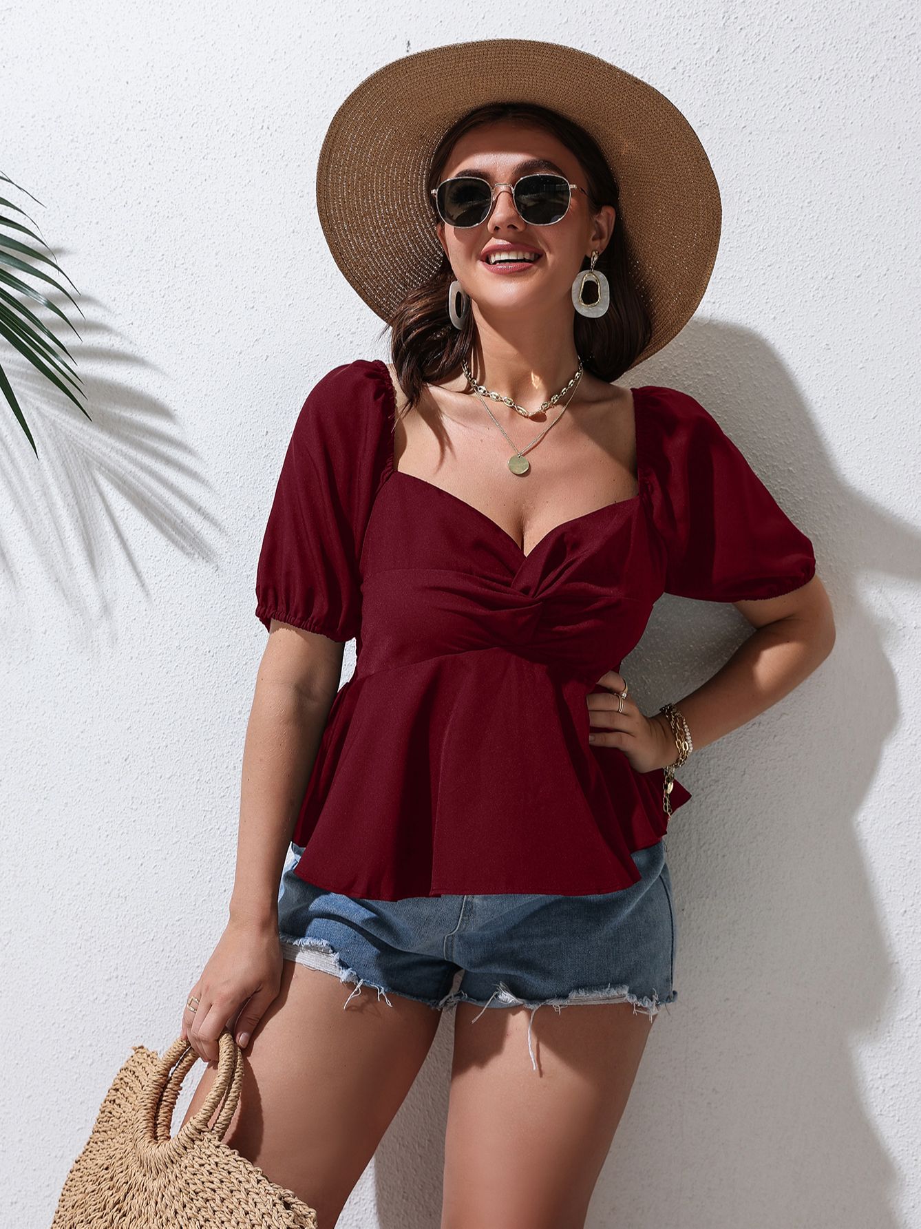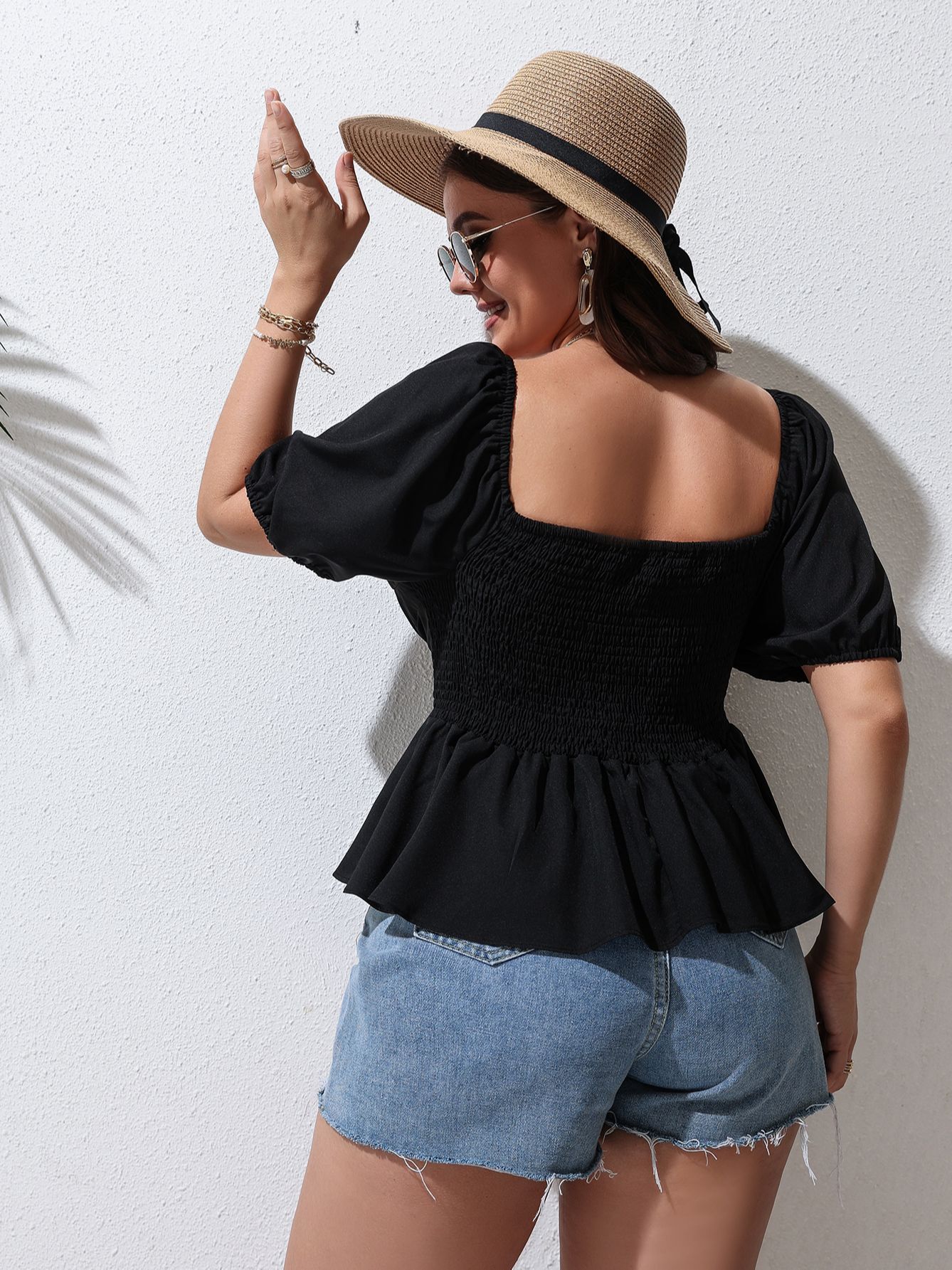 EARO Puff Sleeve Tops Woman Black V Neck Peplum Blouses Summer Plus Size 4XL Casual Elegant Oversized Office Ladies T Shirt