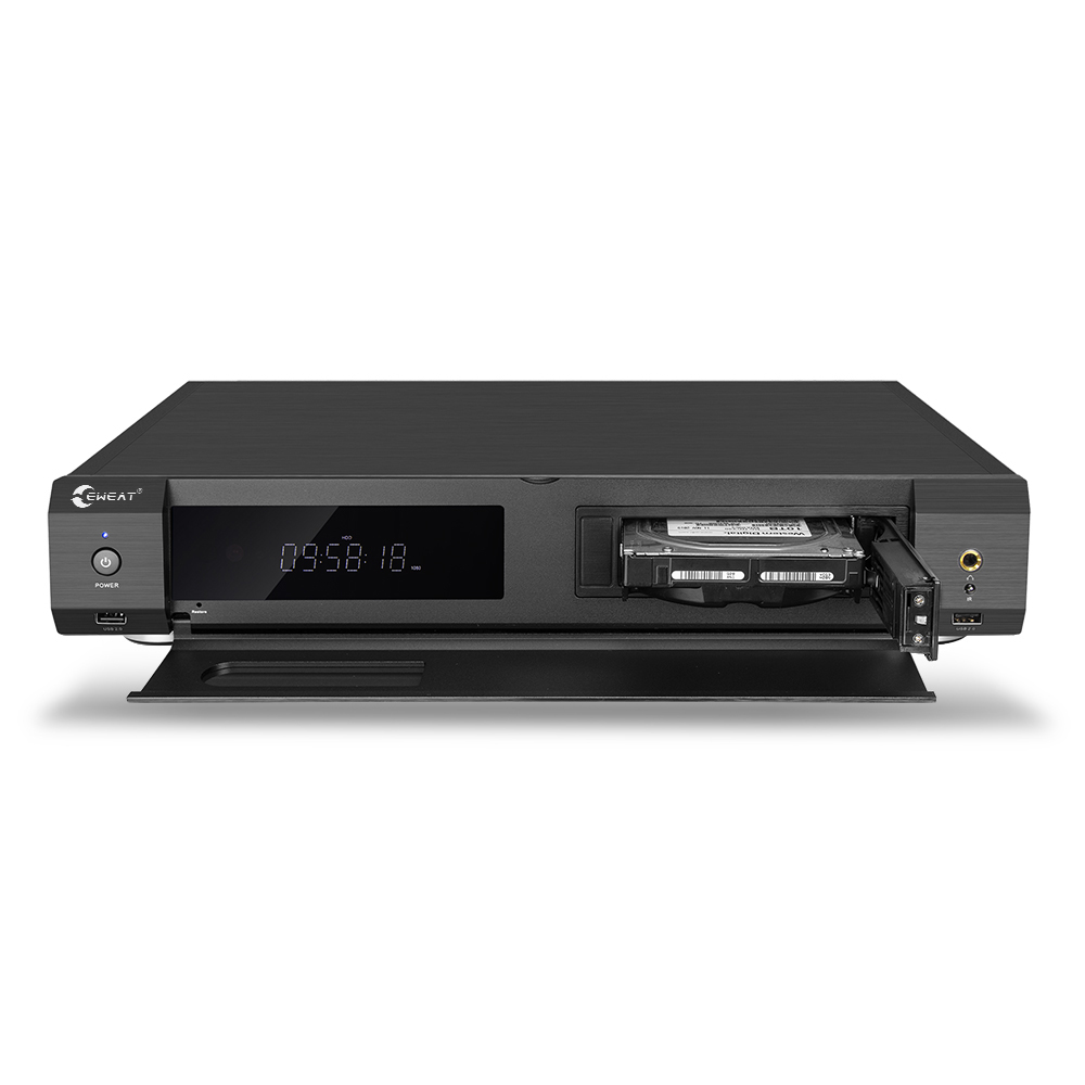 The media player has high-fidelity analog stereo audio outputs(2x XLR+2Xrca) based on ESS9038Pro premium 32-bit DAC with industry's leading level low distortion characteristics